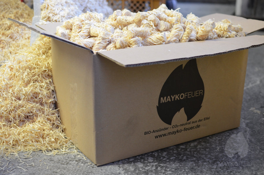 Zündling®-Bio-Anzünder von Mayko-Feuer sind ausschließlich aus Naturstoffen gefertigt. Durch die Holzwolle und das Wachs brennt der Zündling giftfrei und geruchslos ab – mit kräftiger Flamme und langer Brenndauer von rund 10 Minuten. Die Verwendung ist damit klimafreundlich und sparsam zugleich – der Umwelt zuliebe.